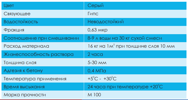 - Слой нанесения — 5-30 мм один слой при полном выравнивании;